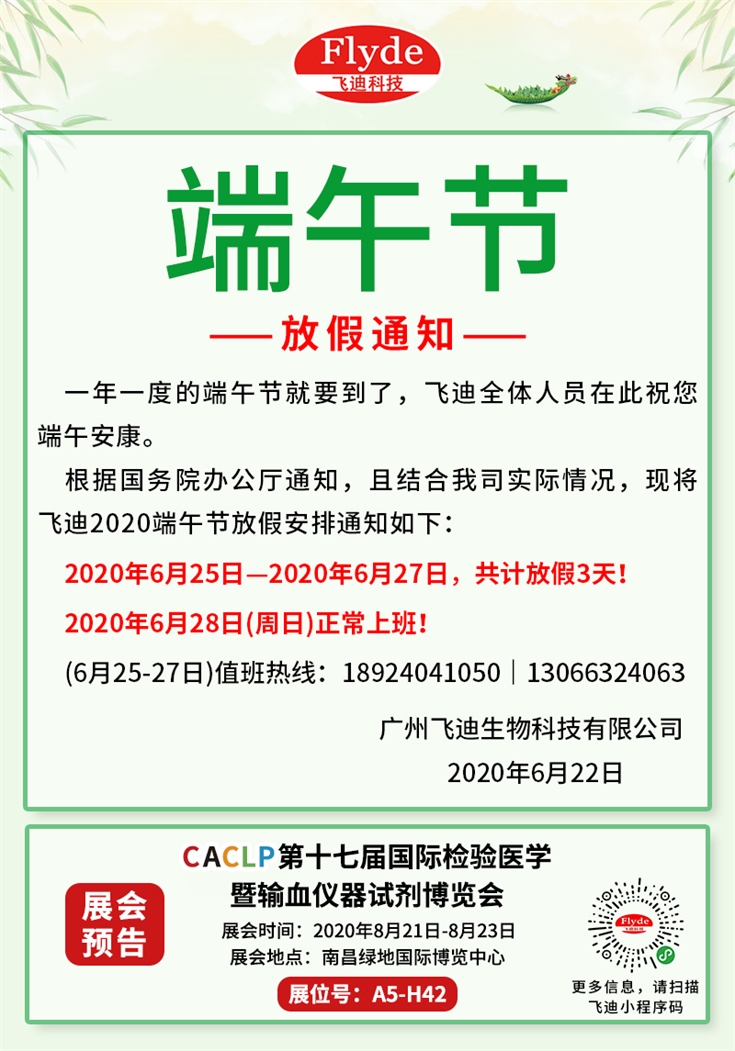 飛迪2020端午節放假公告