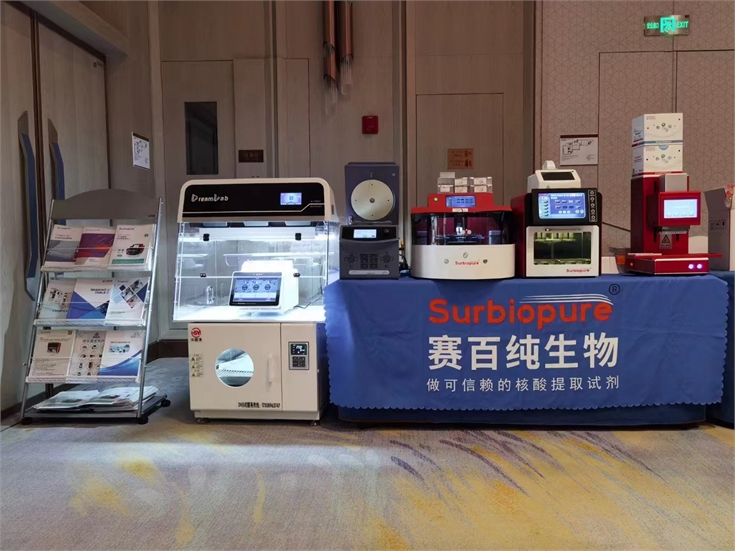 在會上也呈現了賽百純的核酸提取儀,全自動分液裝置,以及飛迪戰略合作的品牌產品,如可成離心機,迪樂嘉超微量分光光度計,朗基T30pcr儀,君勒鉑PCR工作臺,華盛源搖床等