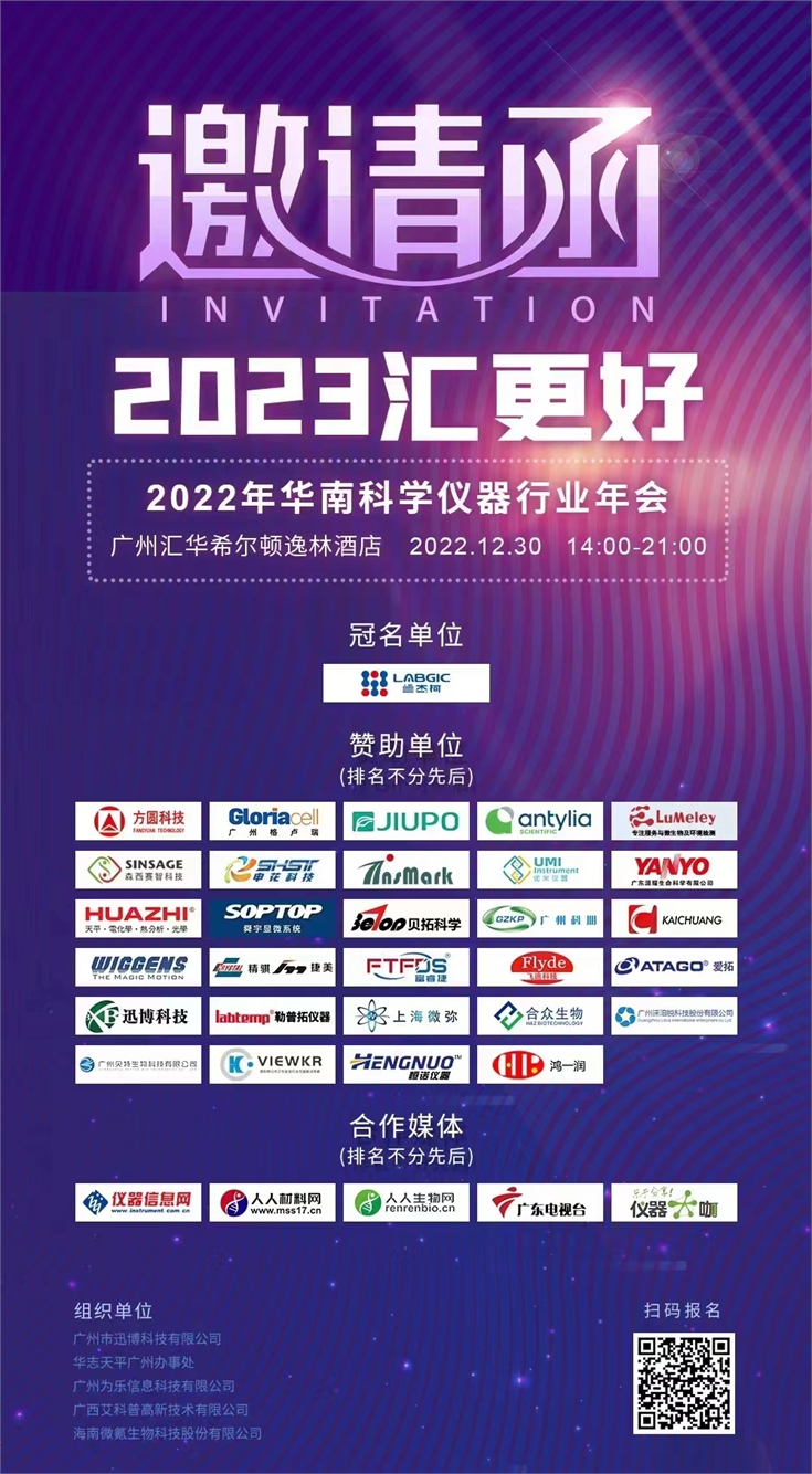 2022年華南科學(xué)儀器行業(yè)年會(huì)將于12月30日在廣州黃埔區(qū)匯華希爾頓酒店舉行,本次本次年會(huì)主題“2023匯更好!”,屆時(shí)將有500名同行相約黃埔,聚力前行!