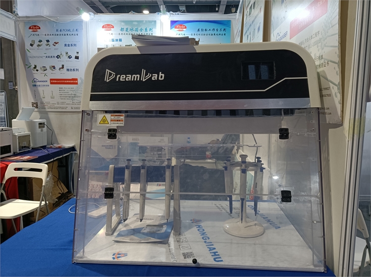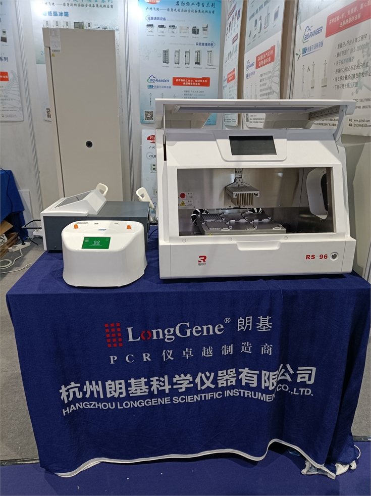科迪云享酶標儀;朗基熒光定量PCR系統、雙槽梯度pcr儀;中科都菱冷藏箱;君勒鉑PCR工作臺;