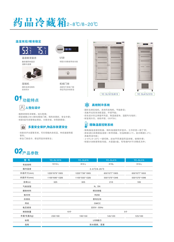 YC系列藥品冷藏箱具備溫濕雙控、精準穩定、人性化設計、高效制冷系統、多重安全保護,物品存放更安全、精確溫度控制系統等特點。