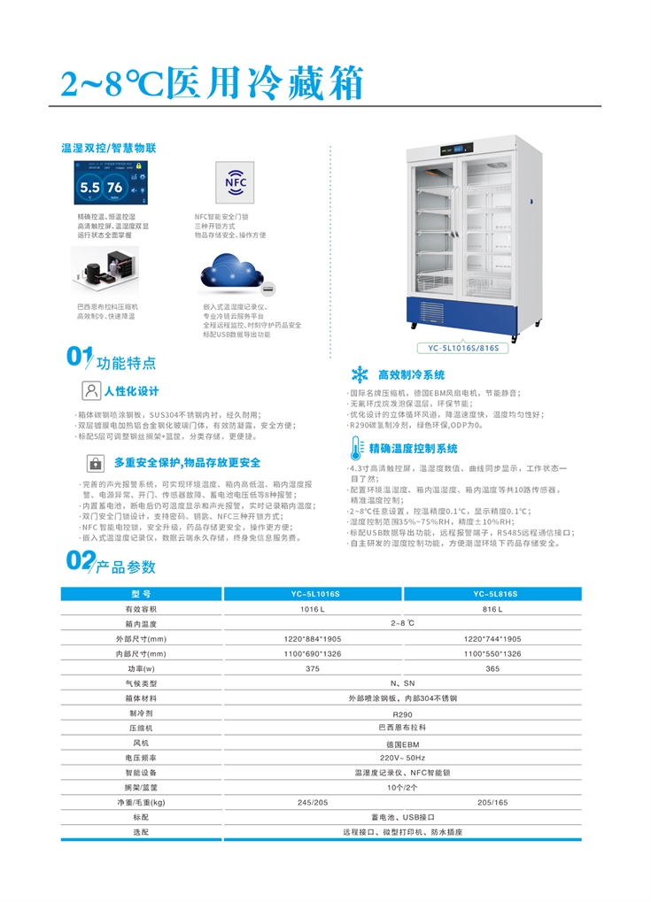 醫(yī)用冷藏箱(智慧物聯(lián)系列)具有溫濕雙控、智慧物聯(lián)、精準(zhǔn)穩(wěn)定、人性化設(shè)計、高效制冷系統(tǒng)、多重安全保護,物品存放更安全、精確溫度控制系統(tǒng)等特點。